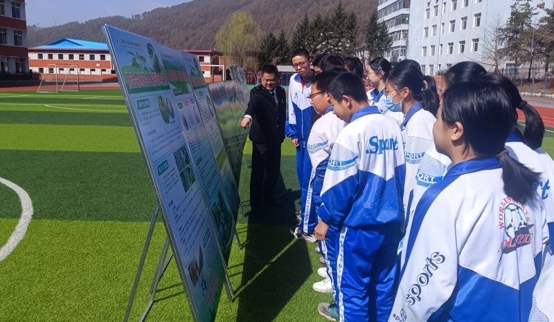 “大家看,這個就是松材線蟲,被它感染的松樹,針葉會呈黃褐色或紅褐色,整株樹木都會干枯死亡,被稱為松樹的癌癥?!痹诘谌袑W操場上,工作人員用通俗易懂的語言向宣傳展板前的學生介紹了松材線蟲、銀杏大蠶蛾、落葉松毛蟲等林業(yè)有害生物的形態(tài)特征、生物學特性、防治措施等知識,讓學生們充分了解林業(yè)有害生物防控知識,從小養(yǎng)成“防控生物災害,維護生態(tài)安全”意識。